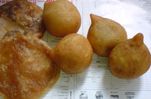Lunar New Year is coming. According to Taishanese tradition, now would be the time to 整糍[dzein55 ti22] -- to make ti (糍), the various bakery delicacies for the occasion. With the sounds of pounding rice (舂米) echo across the field, ti-making would provide ample opportunities for socializing as neighbors and families would joint together to help each other out, for this is a complicated process. I'd like to take the opportunity to share two riddles from my great grandma. Each refers to a specific type of ti (糍). Do you know the answers? Any riddles to share?