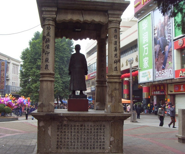 Today, a modern shopping mall occupies the original site. The only trace of its past is the statue of Chin Gee Hee (陳宜禧), the driving force behind the old Xinning Railroad. Having made his fortune partly as a railroad entrepreneur in Seattle, he was convinced that a similar development would jumpstart the economy and extract his hometown from poverty. Through it all, the composed Chin watched passively the upheaval of the past hundred years unfold right before his own eyes. I'm wondering what kind of mix-feeling he is having.